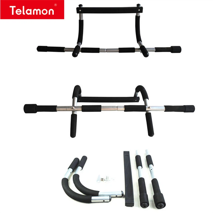 Trek uw lichaam omhoog met uw armen, buig uw ellebogen, breng uw lichaam dicht bij de bar en steek uw hoofd over de bar. Houd even vast.